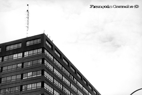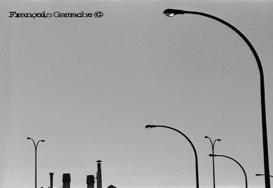 C’est par la contre-plongée que je me suis remis à photographier les endroits significatifs de ce projet. Je ne voyais plus les lampadaires, les antennes paraboliques, les cheminées et les gratte-ciel de la même façon. C’était mon projet « Tête-en-l’air », j’en avais mal au cou. Ce n’était pas évident. Nous sommes habitués de regarder devant nous ou même parterre quand on marche et non en l’air…